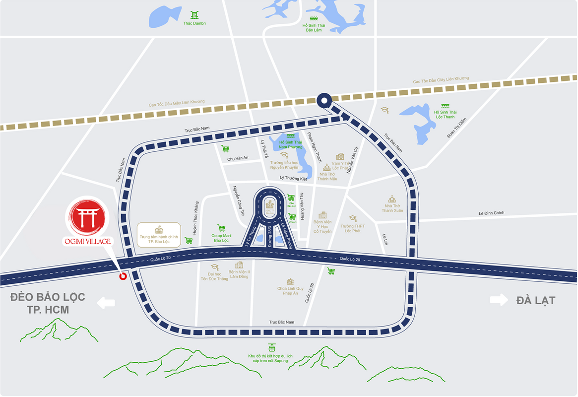 Hệ thống hạ tầng đang dần hoàn thiện với tuyến cao tốc Dầu Giây – Liên Khương, sân bay Lộc Phát, … hứa hẹn tạo động lực phát triển và tăng giá cho khu vực nói chung và Ogimi Village nói riêng.